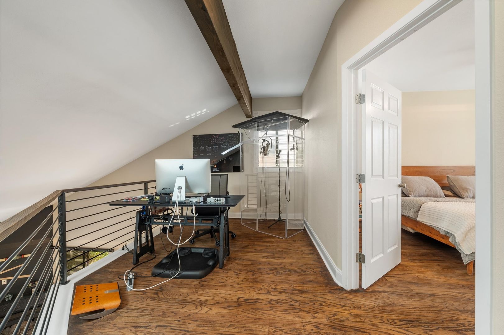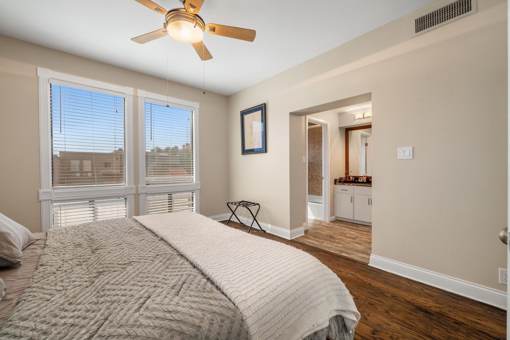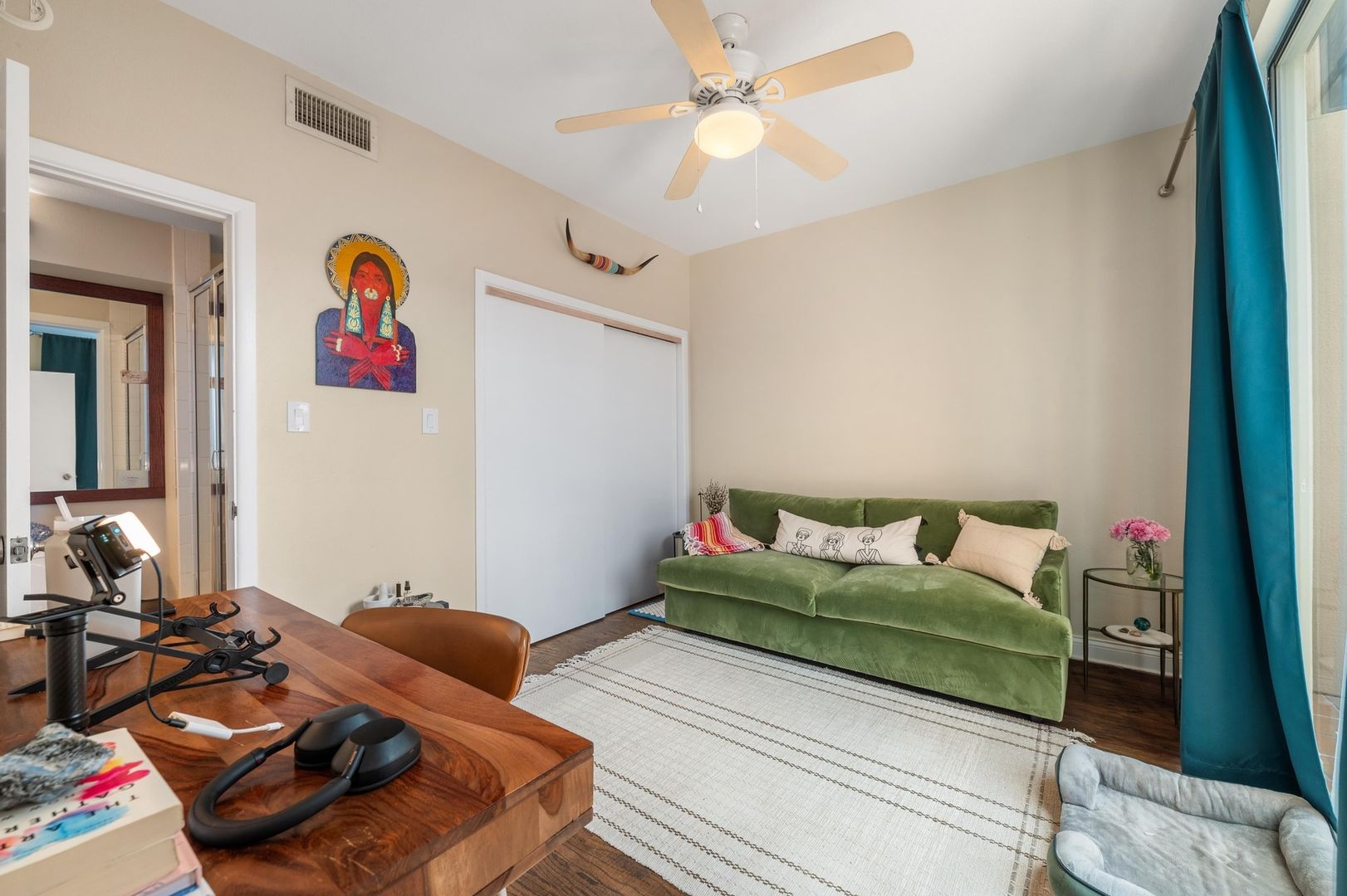 Tucked inside the gated Habidad Condos off Spyglass, this beautifully updated 2 bedroom, 2 bath condo feels like a private retreat in the treetops. The living room overlooks the Greenbelt, and the split-level layout offers great separation that is ideal for roommates or a home office setup. There’s even a loft space off the primary bedroom for added flexibility.