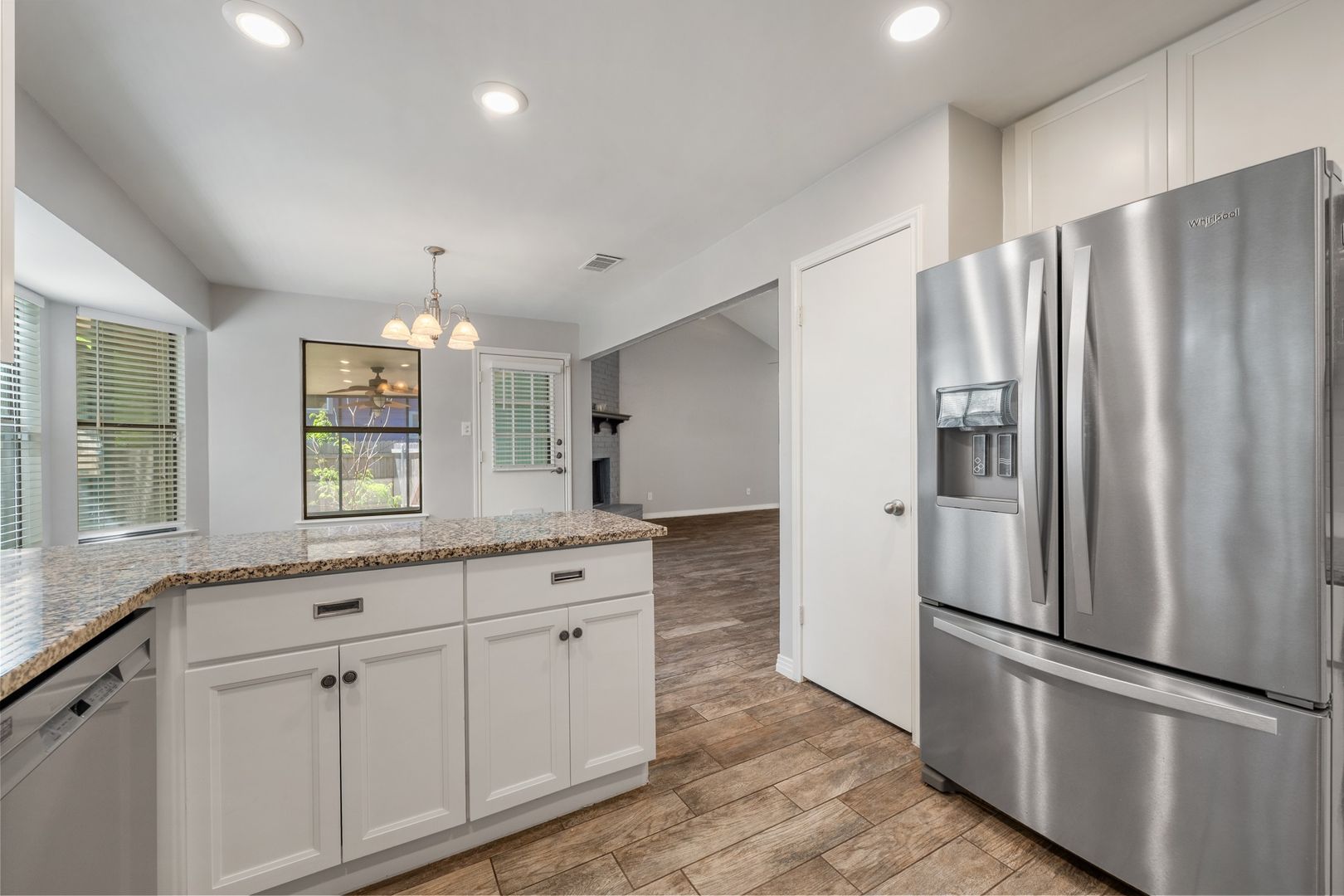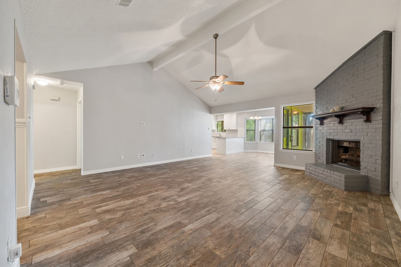Welcome to this beautifully updated 3-bedroom, 2-bath home in the highly desirable Village at Western Oaks. Originally built in 1983, this home has been thoughtfully remodeled with wood-grain tile flooring throughout and a fully renovated kitchen. The dining area offers a great view of the backyard, while the living room features vaulted ceilings and a cozy fireplace that makes the space feel open and inviting.