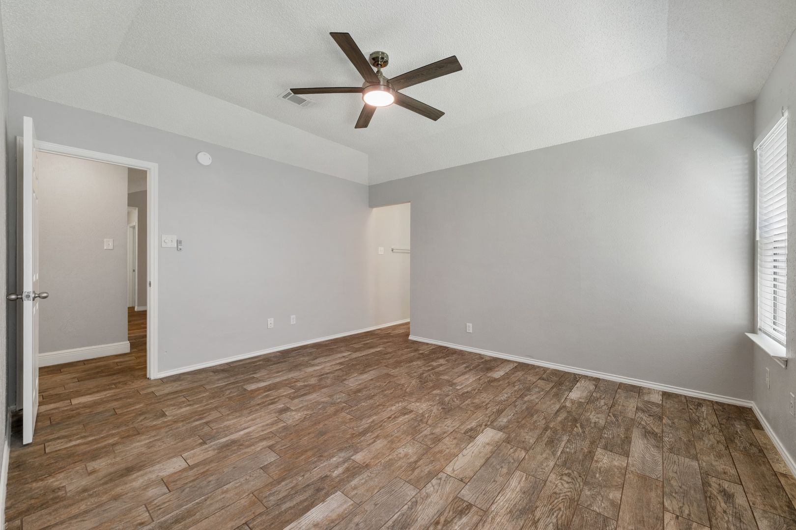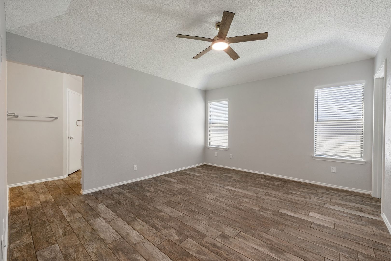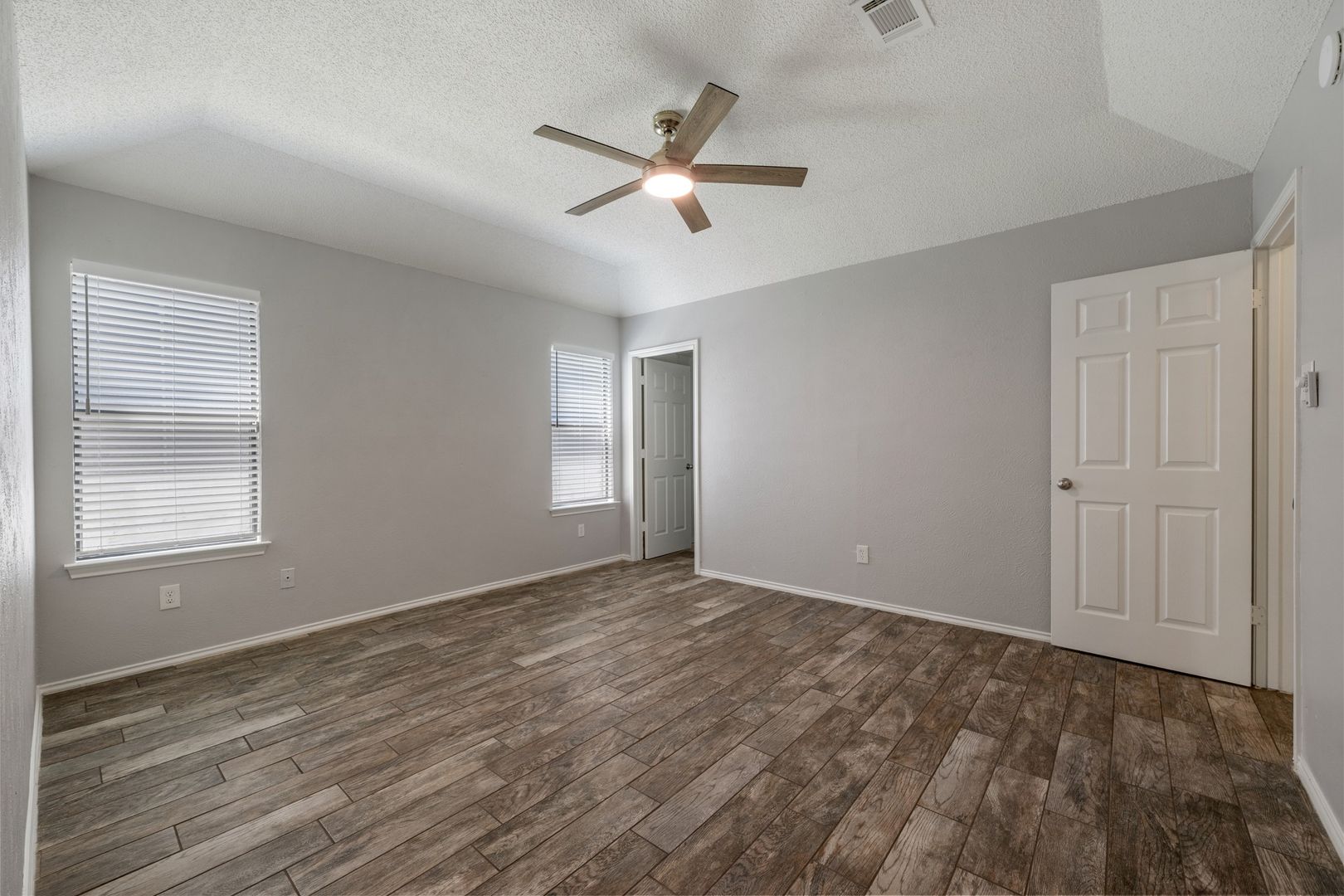 The spacious primary suite includes an ensuite bath and a huge walk-in closet, giving you plenty of room to spread out. The secondary bedrooms are located on the opposite side of the home and share a full bathroom, ideal for added privacy and a functional layout.