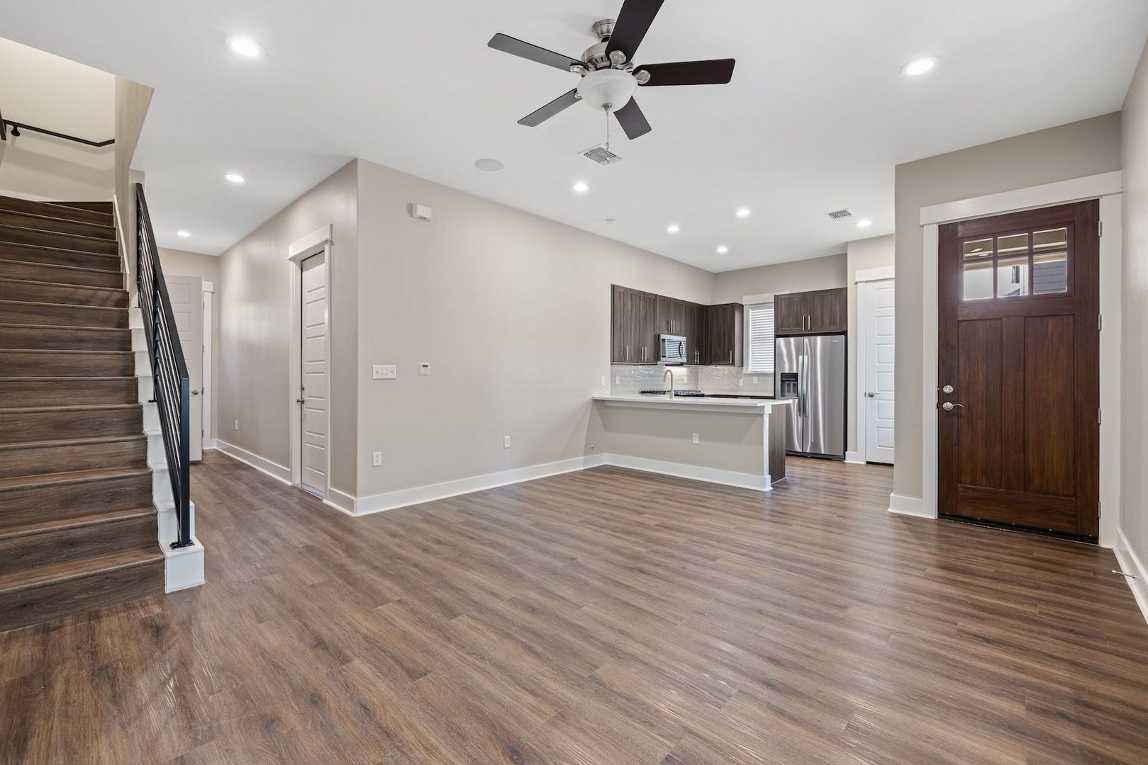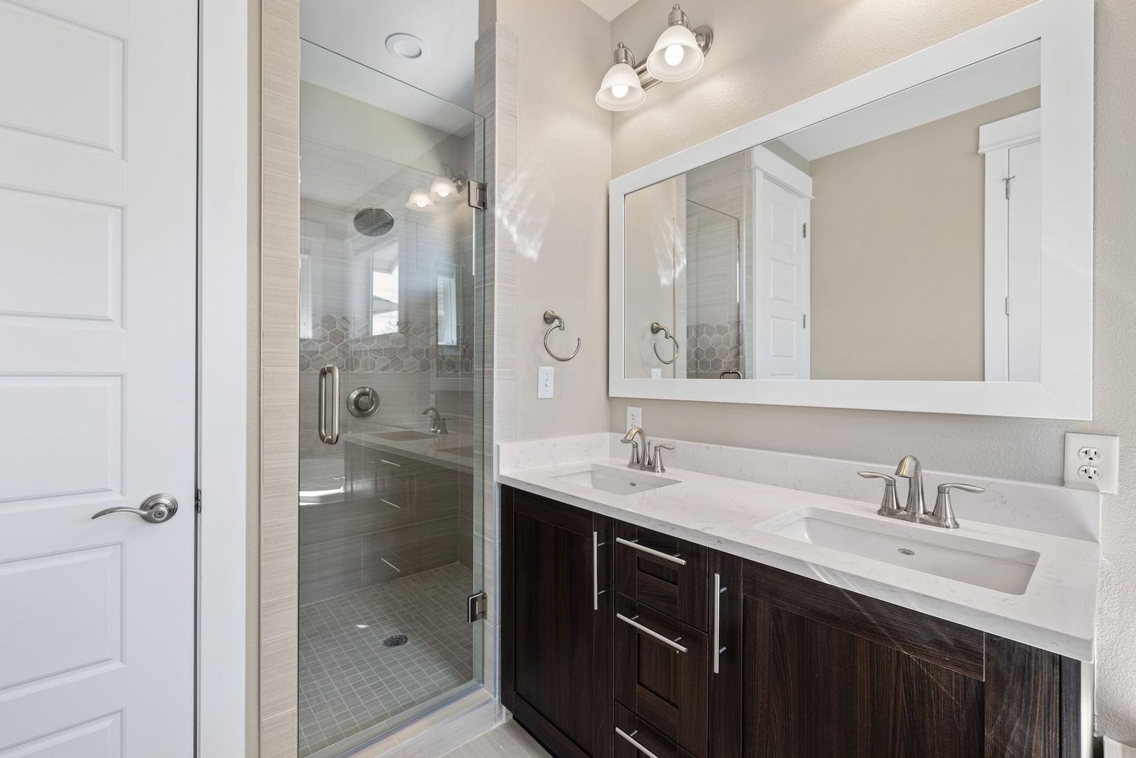 The tech orientation of the home is complemented with a modern, open layout living space that offers a stylish kitchen with top-notch appliances. Enjoy wood and tile flooring throughout. You’ll find two bedrooms with private baths and ample storage upstairs.