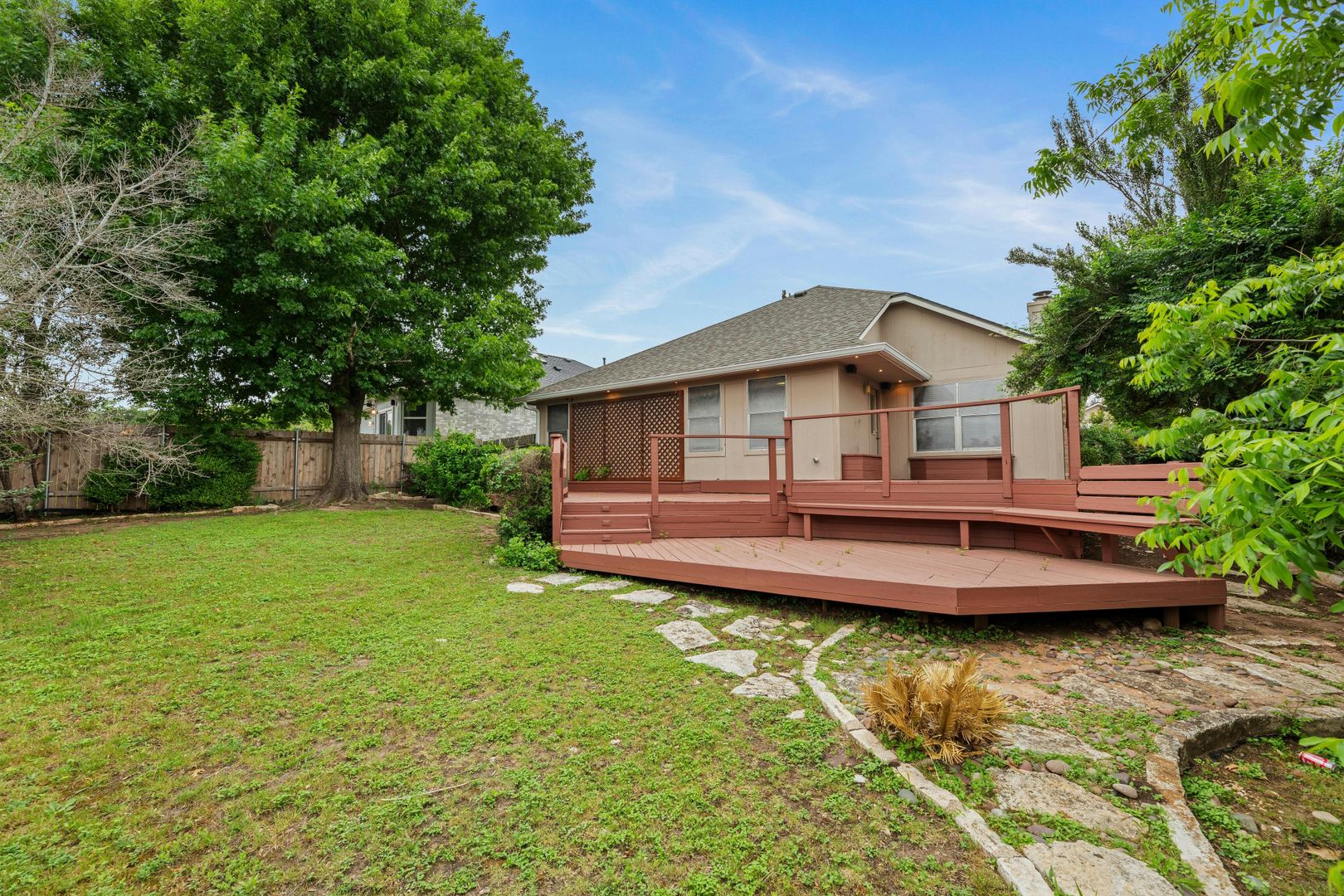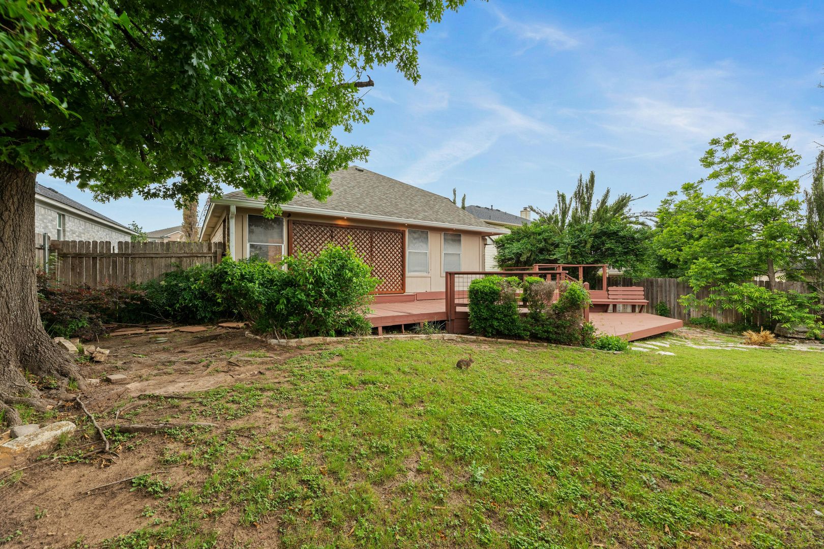 Outside a three-tier custom deck offers outdoor living and entertaining possibilities. Whether you're hosting summer barbecues or enjoying your morning coffee, this fenced backyard is the perfect place to unwind.